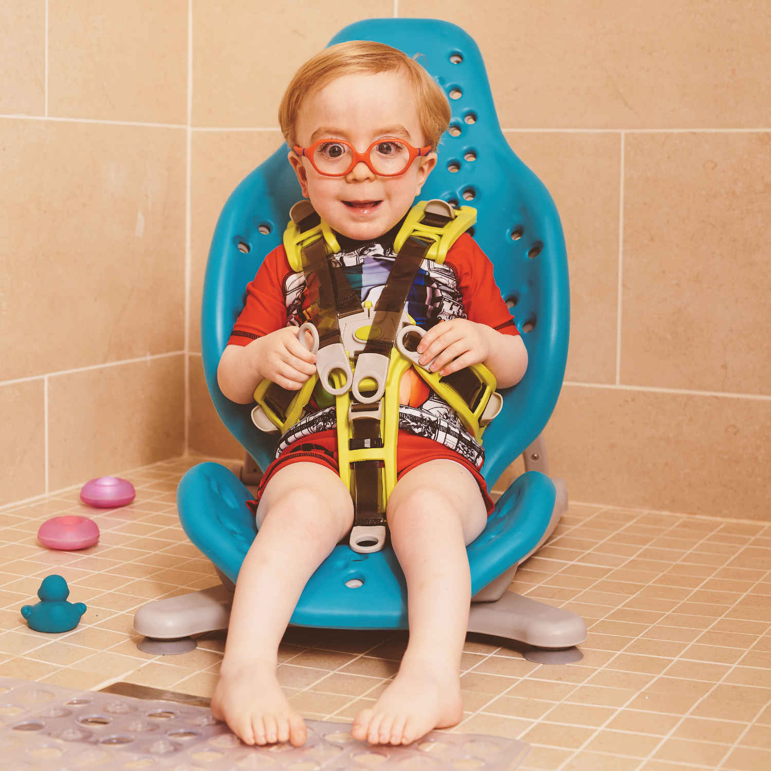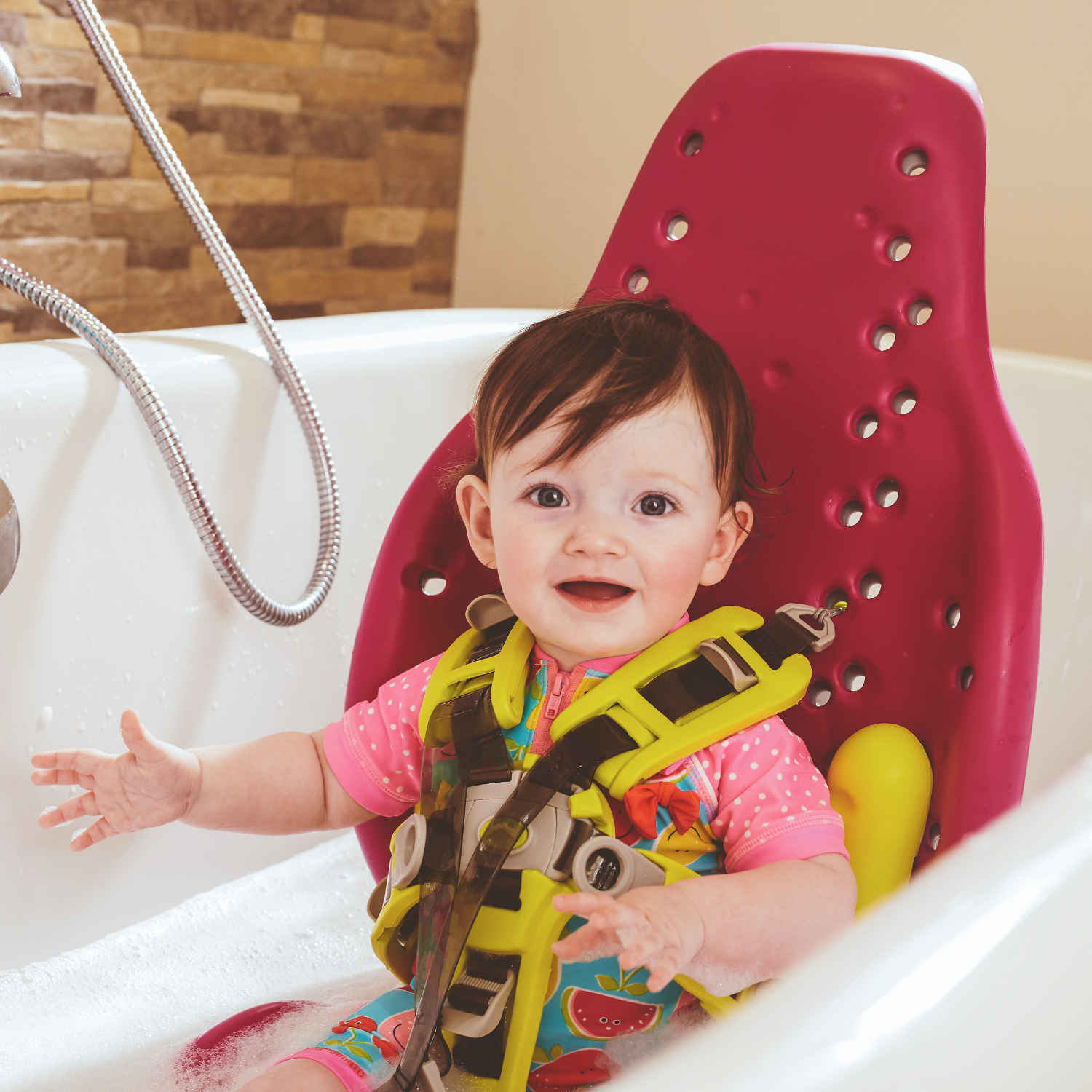 Die Bodenplattform des Splashy kann übrigens auch mit der » GoTo Oberkörperpositionierung « kombiniert werden – eine ideale Kombinationen für Urlaub, Ausflug und zu Hause.