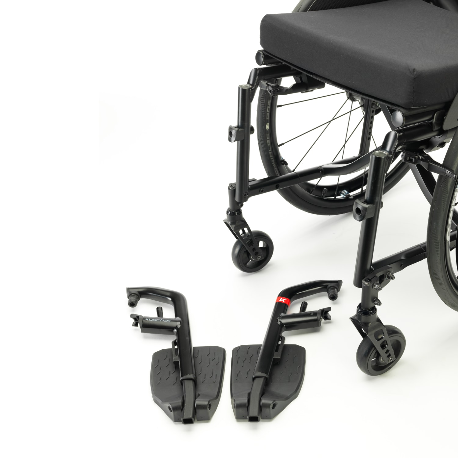Der Küschall Compact ist entweder mit wegschwenkbaren Beinstützen oder festem Vorderrahmen erhältlich. Der feste Vorderrahmen ist ideal für alle, die besonderen Wert auf eine hohe Steifigkeit des Rahmens und damit eine verbesserte Fahrperformance legen. Legst du mehr Wert auf eine hohe Funktionalität und Anpassbarkeit, dann ist der Küschall Compact mit wegschwenkbaren Beinstützen perfekt für dich.