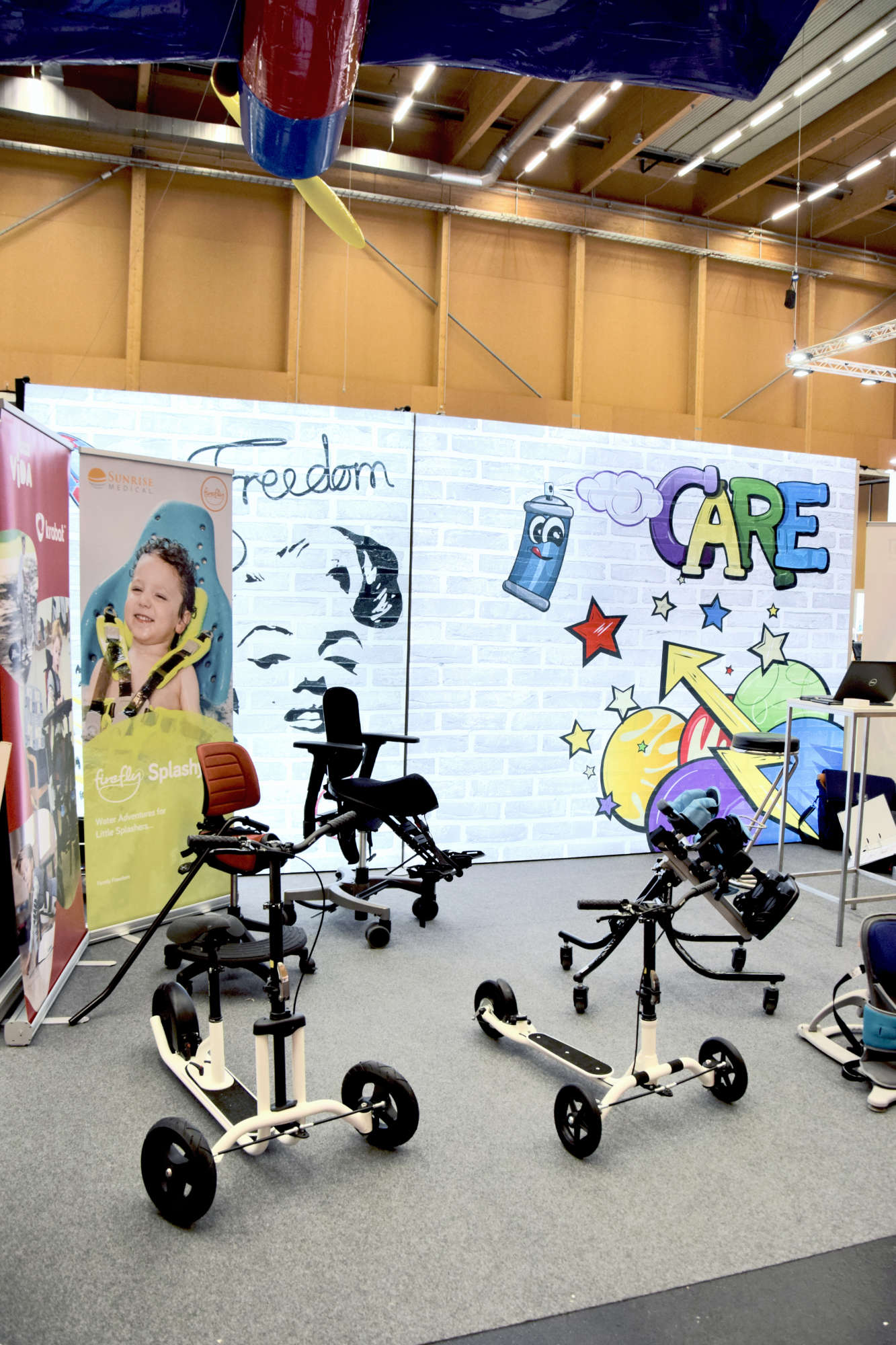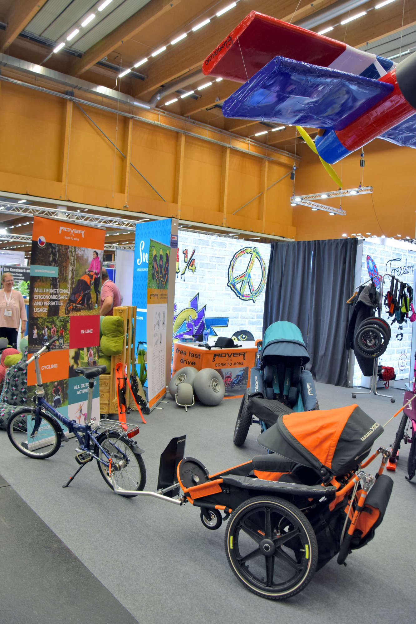 Ein tolles Team, bestehend aus 15 Mitarbeiterinnen und Mitarbeiter der Firmen ORTHOtechnik Family, Orthovida, KayserBetten, Vida Global, Volter, Juzo und Snoezi, standen den Besucherinnen und Besuchern an drei Tagen zur Verfügung. Der Service-Boxenstopp für Rollstühle erfreute sich ebenso großer Beliebtheit wie der Kinderspielbereich mit Bällebad, Bobbycars, Hüpftieren, Malstation und vielem mehr. Zeit für Langeweile blieb also keine – und wir freuen uns auch, dass unsere Produkte auf Herz und Niere getestet wurden.