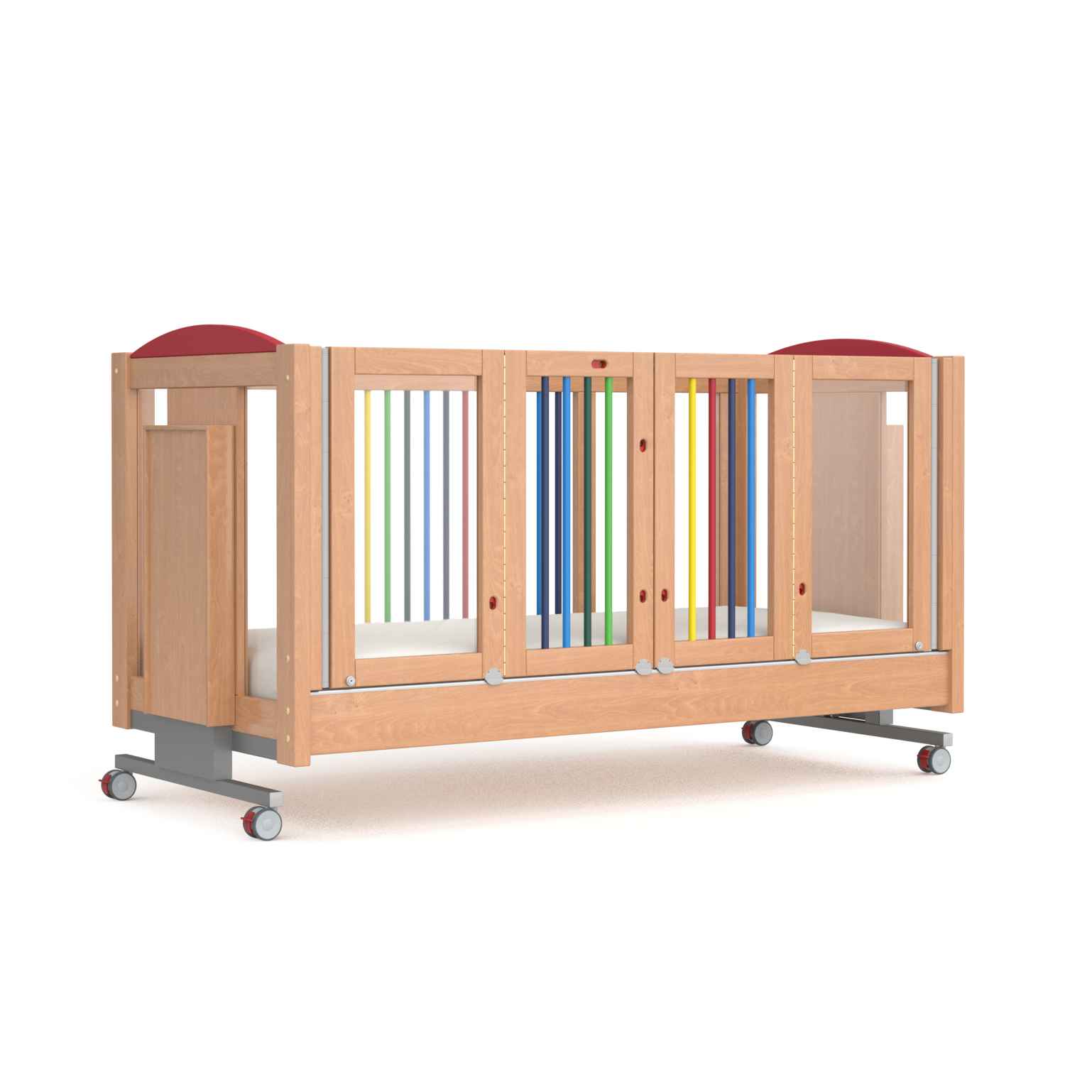 Die 80 cm hohen Türen ermöglichen beim Pflegebett IDA mehr Komfort. Diese können wahlweise nur an einer oder aber auch an beiden Längsseiten befestigt werden. Durch den speziellen Beschlag können die Türen nur von außen geöffnet werden. Motorisch aktive Kinder werden so vor unbeaufsichtigten Ein- und Aussteigen geschützt. Dank der möglichen Höhenverstellung von 45 cm bis 105 cm (Oberkante Matratze) ist das KayserBett IDA auch für pflegende Angehörige und Therapeuten absolut ergonomisch konstruiert.