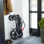 Der leichte Aluminiumrahmen ist sehr einfach zu falten und zu verstauen – äußerst kompakt! Die Sitztiefeneinstellung und das stabile, multieinstellbare Fußbrett sind eine Klasse für sich. Ein durchgehender, einstellbarer Schiebegriff und schwenkbare, arretierebare Vorderräder optimieren Fahrkomfort und sprengen wahrlich Grenzen.