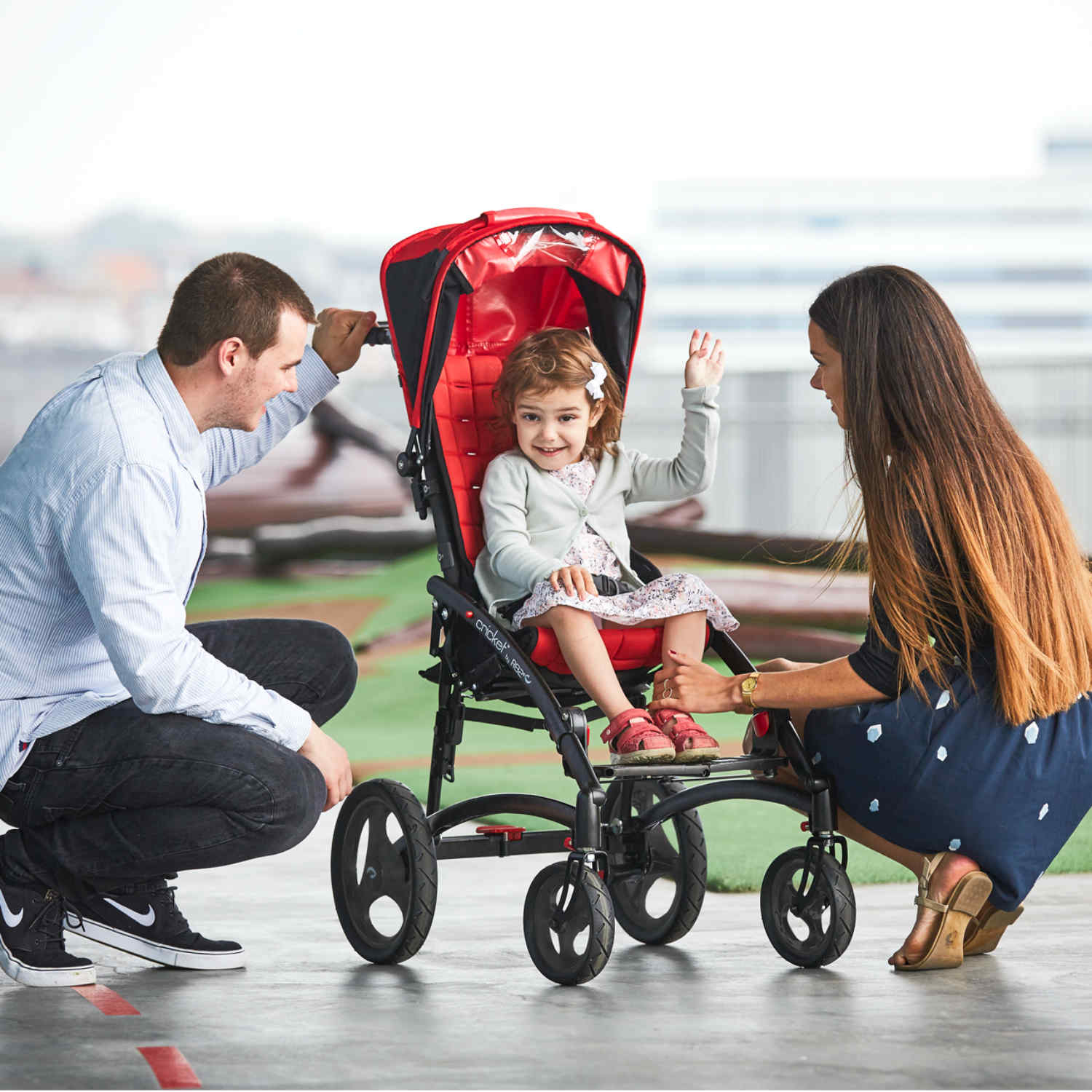 Der Cricket ist ein funktioneller und moderner Buggy, der Kind und Begleitperson optimale Unterstützung und Komfort bietet. Er ist in zwei Größen erhältlich, individuell anpassbar und mitwachsend – so kann dieser Rehabuggy das Kind gleich mehrere Jahre lang begleiten.