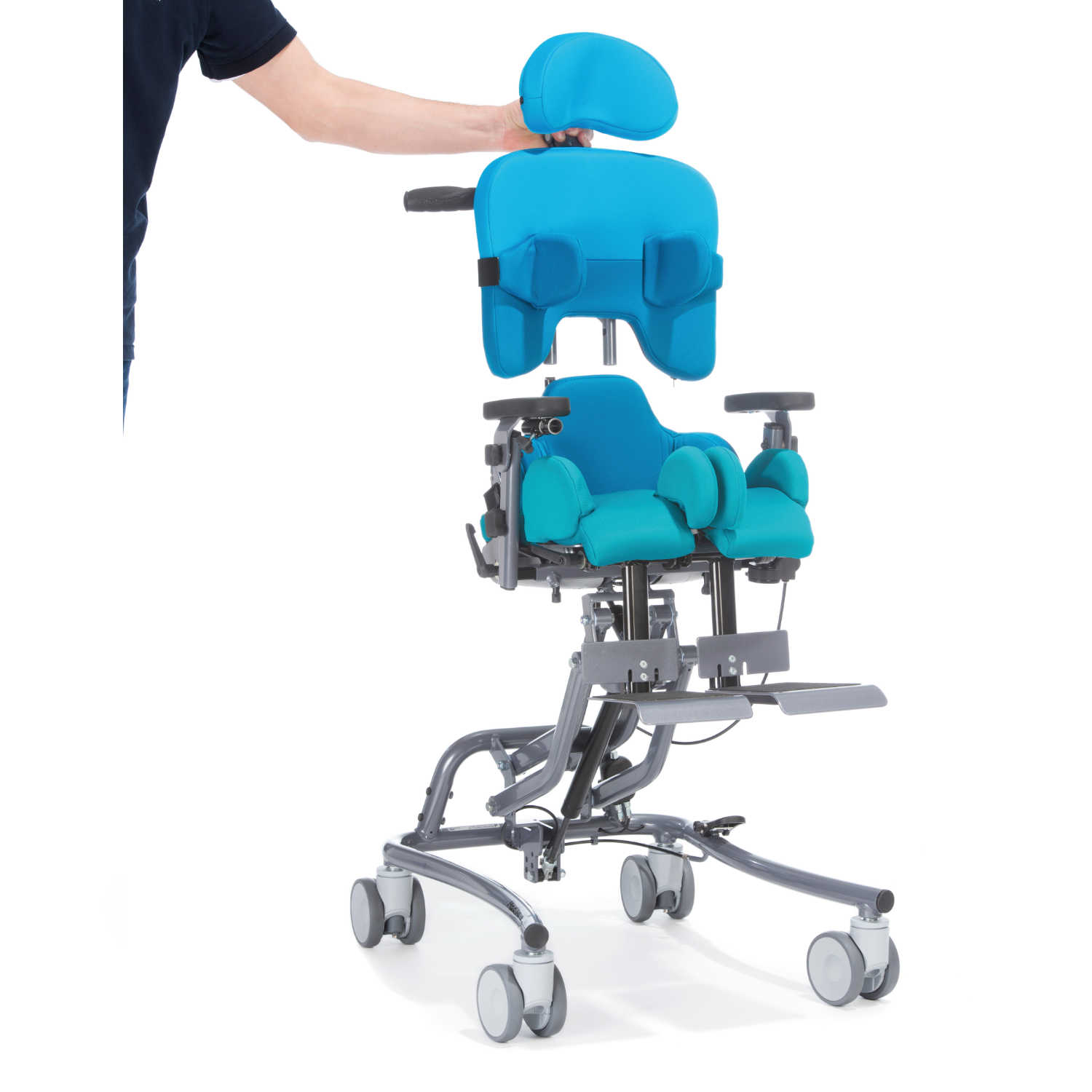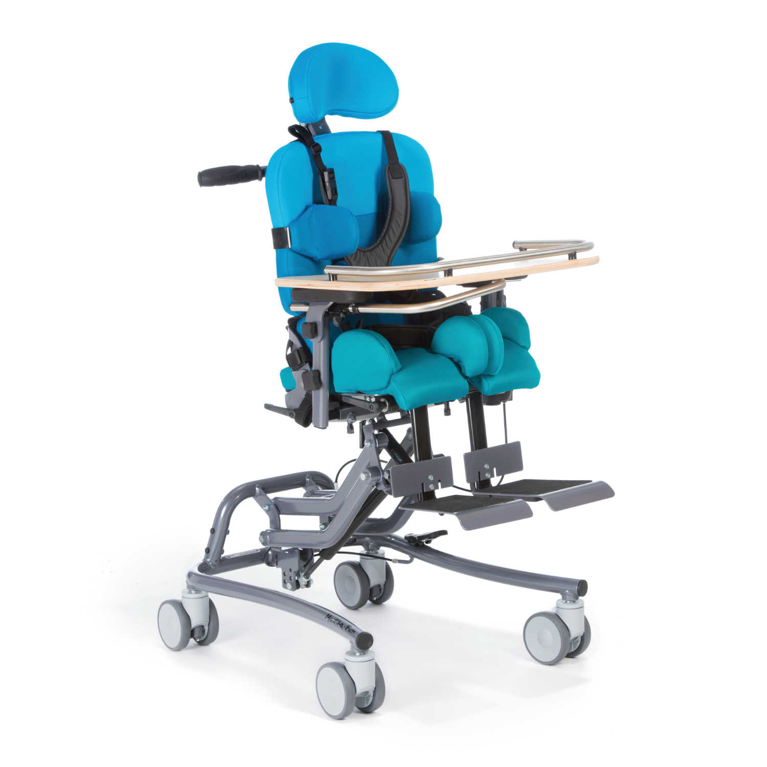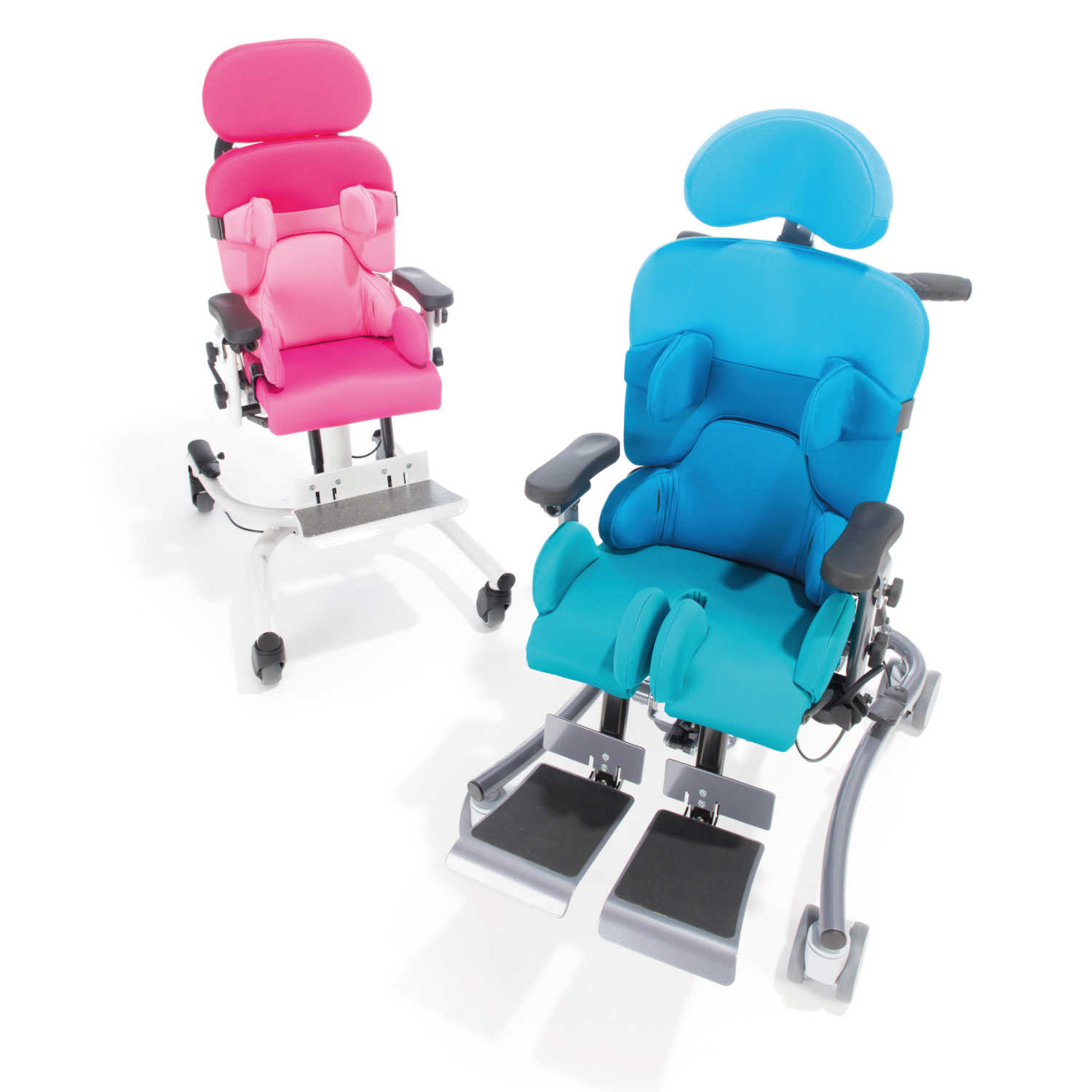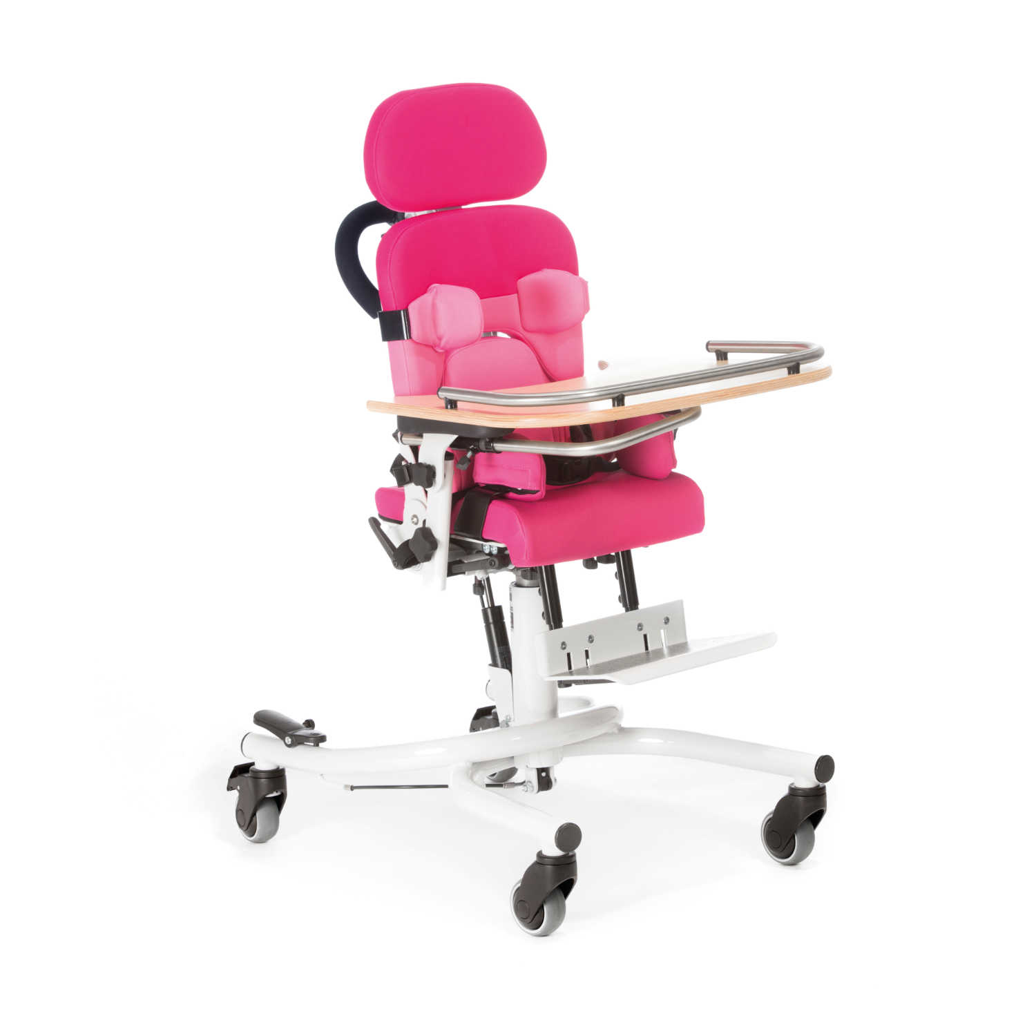 Individuell einstellbare Sitzmaße und unterstützende Pelotten ermöglichen eine stabile und aufrechte Sitzposition. Die Sitzhöhe ist mittels Gasdruckfederunterstützung an unterschiedliche Tisch- oder Spielhöhen anpassbar. Die Sitzkantelung ist ebenfalls per Gasdruckfeder verstellbar und kann so schnell und einfach an die aktuelle Verfassung des Kindes angepasst werden.